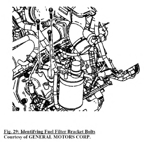 3. Remove the fuel filter bracket bolts.