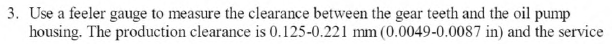 6. Replace the oil pump assembly if the clearance exceeds the service limit.