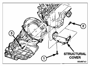 11. Install the structural cover (1) (Refer to 9 – ENGINE/ENGINE BLOCK/STRUCTURAL COVER