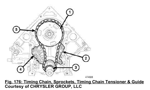 4. Install the timing chain and camshaft phaser. Refer to CHAIN AND SPROCKETS, TIMING, INSTALLATION.