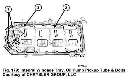 9. Install the oil pump pickup tube (2) and oil pan. Refer to PAN, OIL, INSTALLATION.