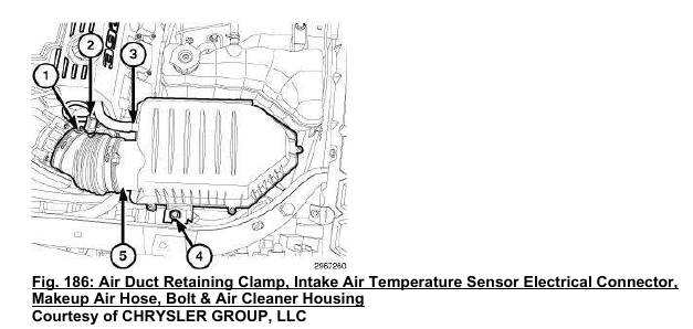 20. Install the air cleaner housing (5) and clean air tube (1).