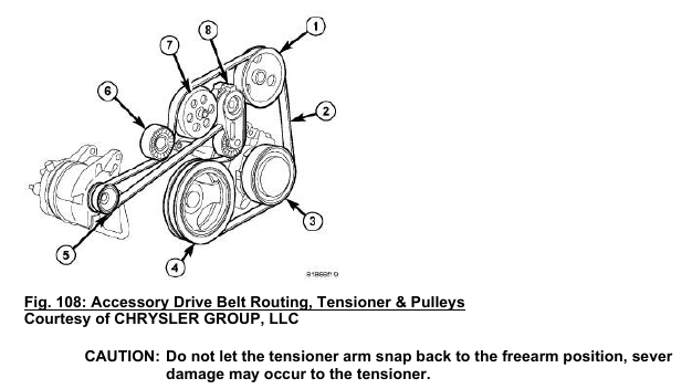 accessory drive belt (2), then slowly release the tensioner into position. Refer to BELT, SERPENTINE, INSTALLATION .