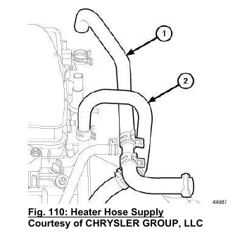 16. Connect the heater hoses (1, 2).