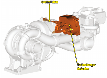 • The turbocharger actuator is mounted directly to the high pressure turbo and is connected to the vanes