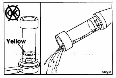 A yellow or green color will indicate a combustion leak. A blue color will indicate there is no leak. This information
