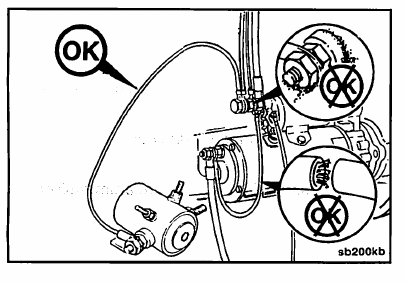 • Check the cable connecting the starter solenoid to the starter motor for breaks, and for loose or corroded