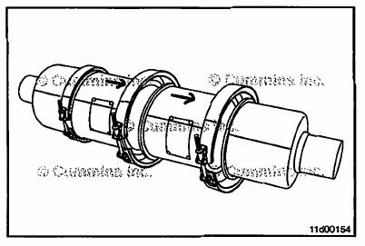 • Install new gaskets on the three-bolt flanges at the inlet and outlet of the joined aftertreatment diesel oxidation