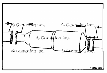 • Install the new gaskets on the inlet and outlet of the aftertreatment diesel particulate filter canister.