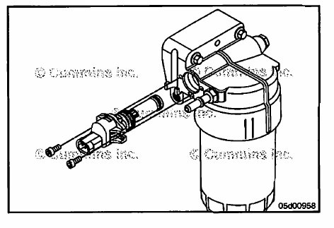 NOTE: Make sure the heater seal ring is not stuck to the bottom of the fuel filter when the heater is removed.