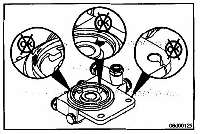 Inspect the fuel filter head for cracks, passage blockage, and material or debris on the sealing surfaces.