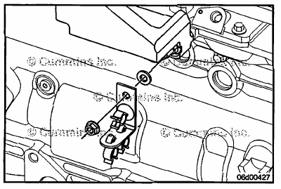 Remove the fuel filter head bracket mounting hardware and bracket.