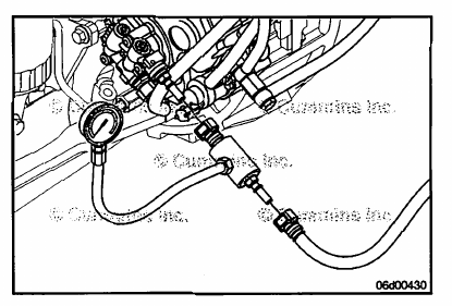 NOTE: The pressure gauge adapter can also be installed at the priming pump outlet. Install the line between the fuel