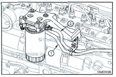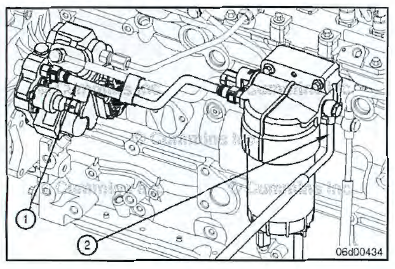 Install the fuel supply line (1) from the priming pump filter head outlet to the fuel pump inlet.