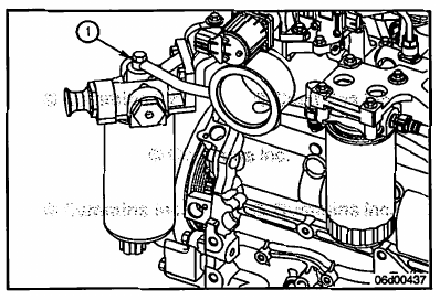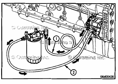 Install the fuel supply line (1) from the suction side fuel filter head outlet to the gear pump inlet.