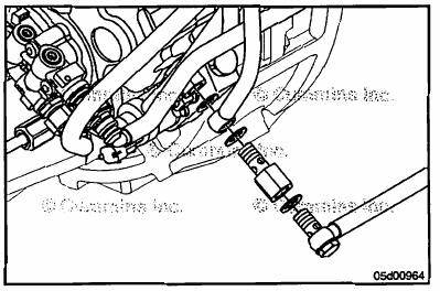 • Remove the flow-through banjo bolt from the drain connection eyelet.