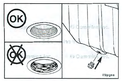 Clean and check the lubricating oil drain plug threads and sealing surface. Use a new sealing washer, if damage is