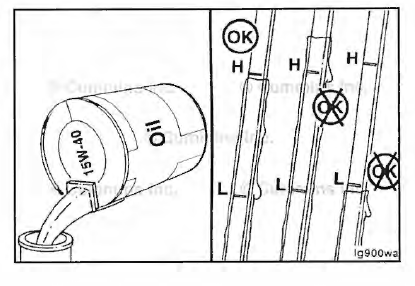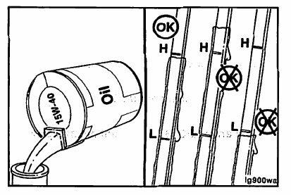 Add oil as necessary to bring the oil level to the H (high) mark on the dipstick.