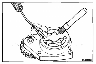 Inspect the lubricating oil pump housing and gerotor drive for damage and excessive wear.