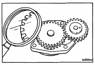 Inspect the lubricating oil pump gears for chips, cracks, or excessive wear.
