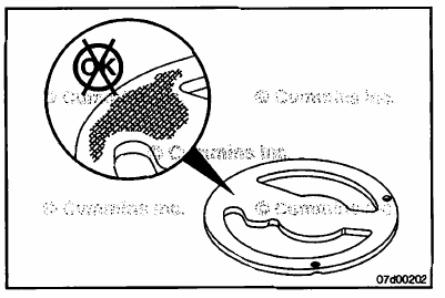 Inspect the rear cover plate for scoring or grooves. If the cover is scored or grooved too badly, the lubricating oil