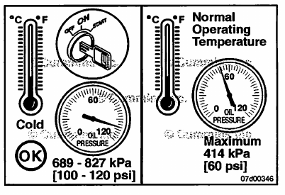 oil pressure is approximately 414 kPa [60 psi] when normal operating temperature is reached.