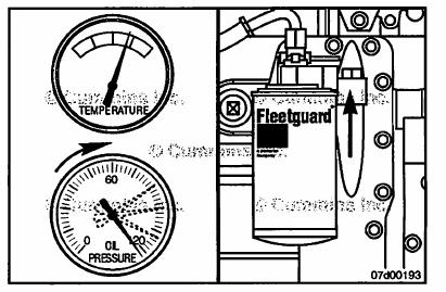 Verify the pressure with a manual gauge to make sure the lubricating oil gauge and the sending unit are operating