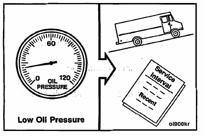 Low lubricating oil pressure (or no oil pressure) can be caused by several lubricating system-related malfunctions. To begin the investigation, determine the engine operating conditions when the low pressure was first observed. The following are conditions of low lubricating oil pressure: