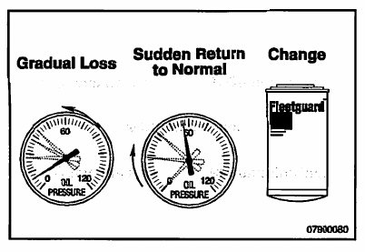 pressure will return to normal when the filter bypass valve opens. If not corrected, this will result in severe engine