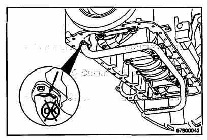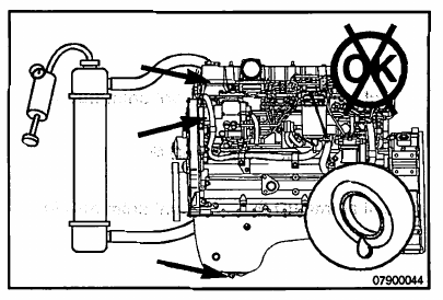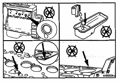 • Lubricating oil drain plug. Leaks indicate a damaged oil cooler, cylinder head gasket, or cracked cylinder head or block. Refer to Procedure 007-037 in Section 7.