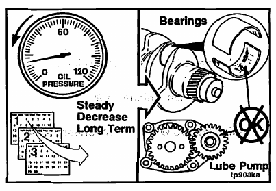 A steady decrease in oil pressure over a long period can be an indication of worn bearings or excessive lubricating