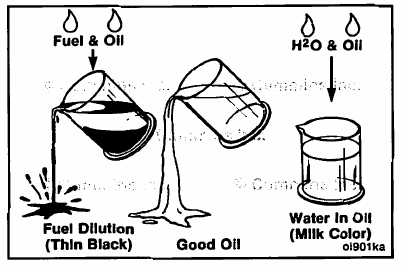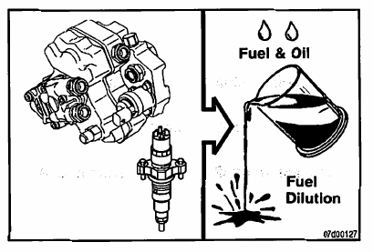 Fuel dilution of the lubricating system is generally due to the injector, but may also be due to internal damage to the