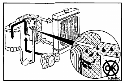 If the oil cooler element ruptures, the oil pressure will force oil into the coolant system.