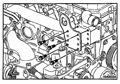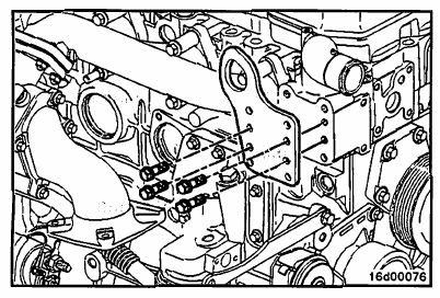 For engines not equipped with pad mount alternators, install the capscrews and front bracket.