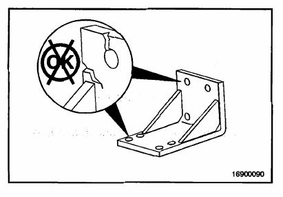 cracking and deterioration. If any damage is found, the rear engine support bracket must be replaced.
