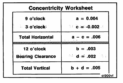 NOTE: The values listed in the concentricity work sheet illustrated are for example only and are listed in inches.