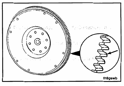 The ring gear must be installed so the bevel on the teeth is toward the crankshaft side of the flywheel.