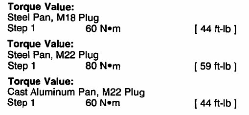 Use the following torque value for 6-cylinder applications with a suspended oil pan.