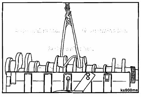 Attach the sling to a hoist and remove the crankshaft.