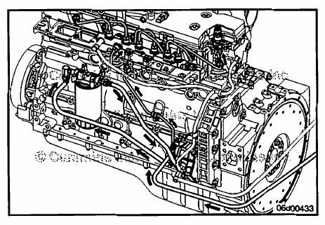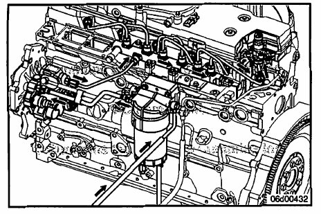 • Remove the fuel supply line connecting the gear pump outlet to the pressure side fuel filter head inlet.