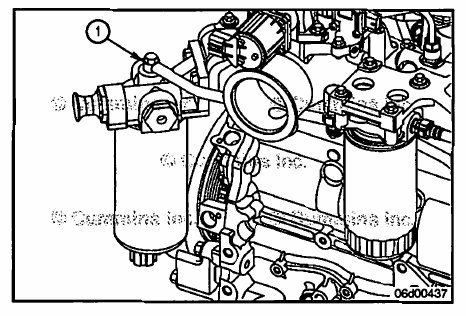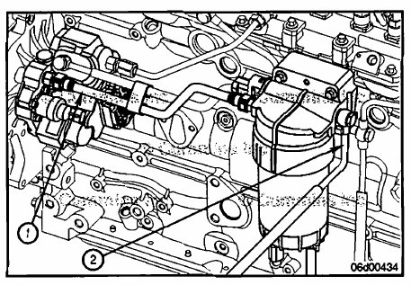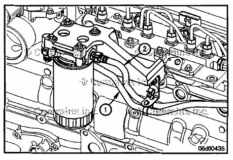 Remove the fuel supply line (1) from the suction side fuel filter head outlet to the gear pump inlet.