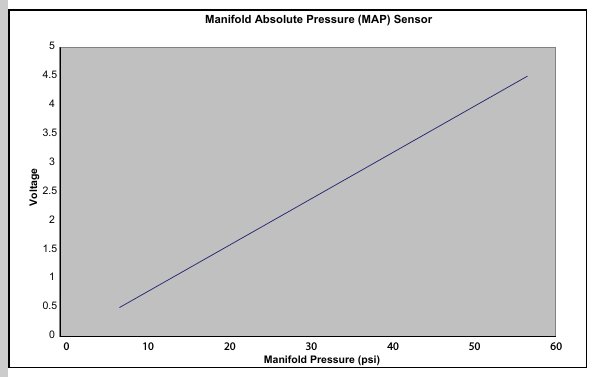 The MAP sensor is a 3-wire variable capacitance sensor. The PCM supplies a 5 volt reference (VREF) signal which the MAP uses to produce a linear analog voltage that indicates pressure.