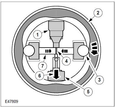 If a cam now starts to run along the roller support of the pump plunger, the plungers moves to the centre of the high-pressure chamber. As this occurs, the delivery pressure of the pump plungers exceeds the transfer pressure and the inlet valve is closed.
