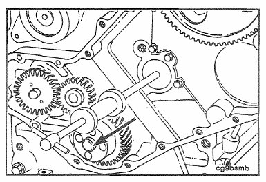 Mark the camshaft bushing and cylinder block so you can align the lubricating oil hole in the cylinder block with the