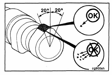 Outside of the + or -20 degrees of the nose of the camlobe, the areas of edge deterioration should not be greater