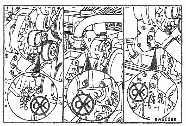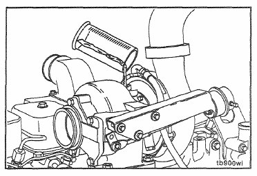 Pour 50 cc to 60 cc [2.0 fl. oz. to 3.0 fl. oz.j of clean 15W-40 lubricating oil into the turbocharger lubricating oil supply hole.