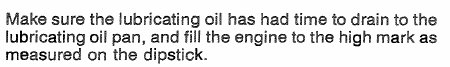 Fill the engine with lubricating oil to the high level mark on the dipstick.