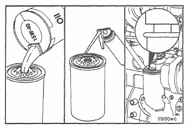 Fill the lubricating oil filters with clean 15W-40 lubricating oil.