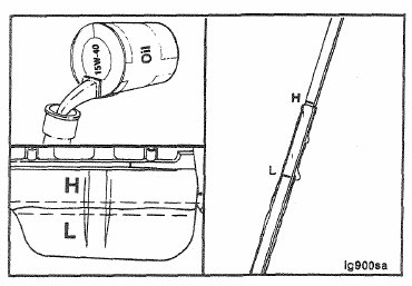 Add lubricating oil as necessary to bring the level to the high level mark.
