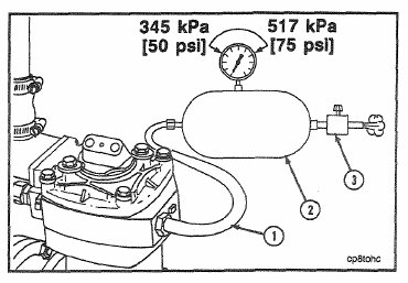 high temperature hose (1). Install an air regulator (3) that can maintain tank air pres­sure of 345 kPa to 517 kPa [50 psi to 75 psi] at both the minimum and the maximum engine RPM.